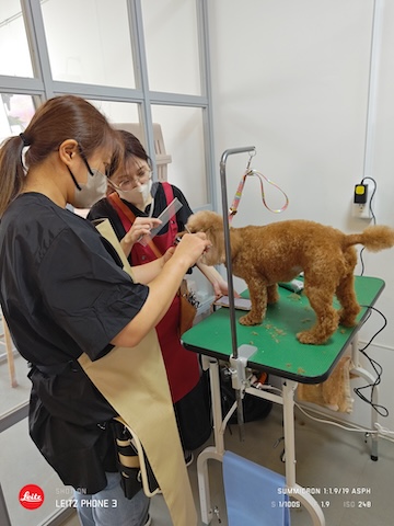 グルーミング(爪切り・耳掃除・シャンプー・ドライング・肛門腺しぼり・足裏バリカン他)もプロのレベルで丁寧に仕上げられるよう指導します。