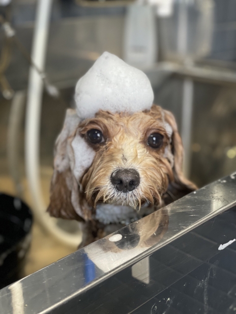 後期は全コース1人で1頭を担当し、毎回シャンプーからカットまで全ての工程を行います(犬種や性格により複数人で担当する場合もあります)。